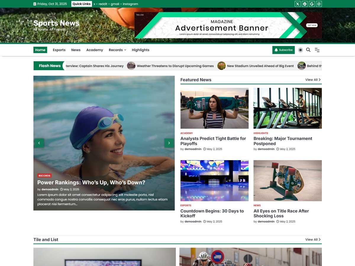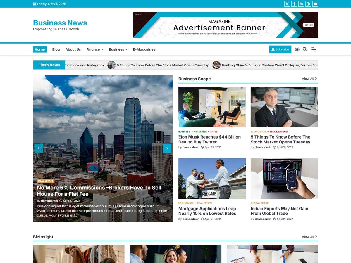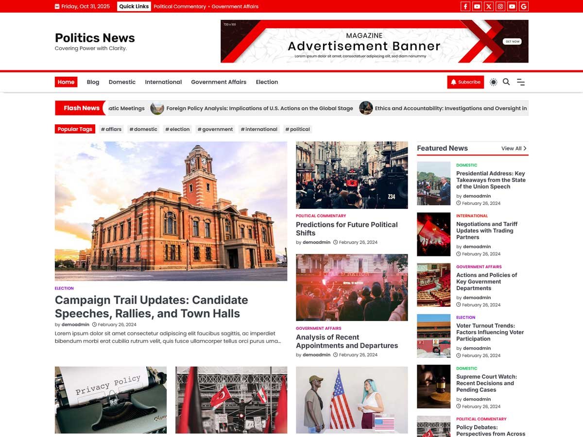 You will get an option to display Flash news in the header section. This can be shown by category or the latest news.