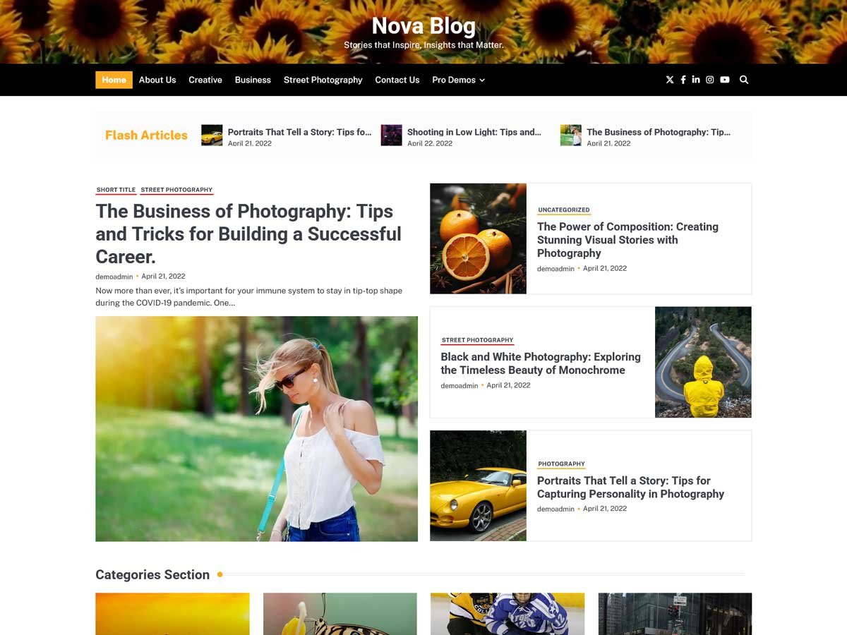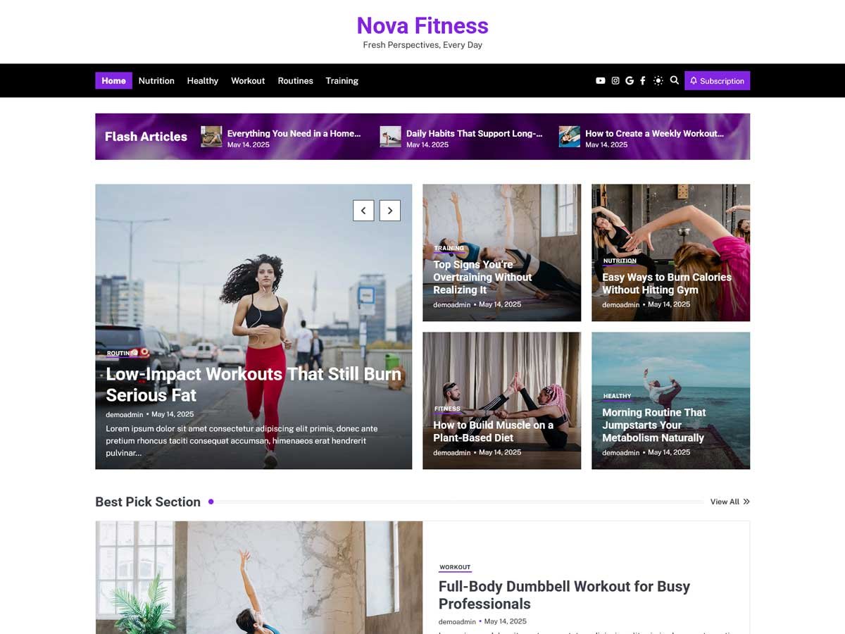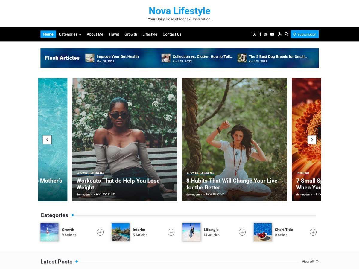 Nova Blog Pro provides various homepage demos to choose from based on the nature of your theme, the demos offer various designs and feel. Choose a demo that best displays your website’s identity and highlights the most important features.
