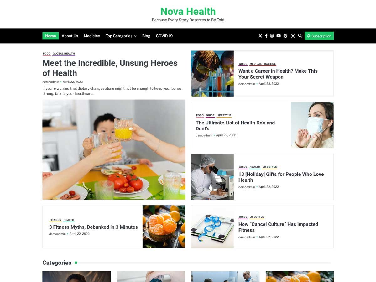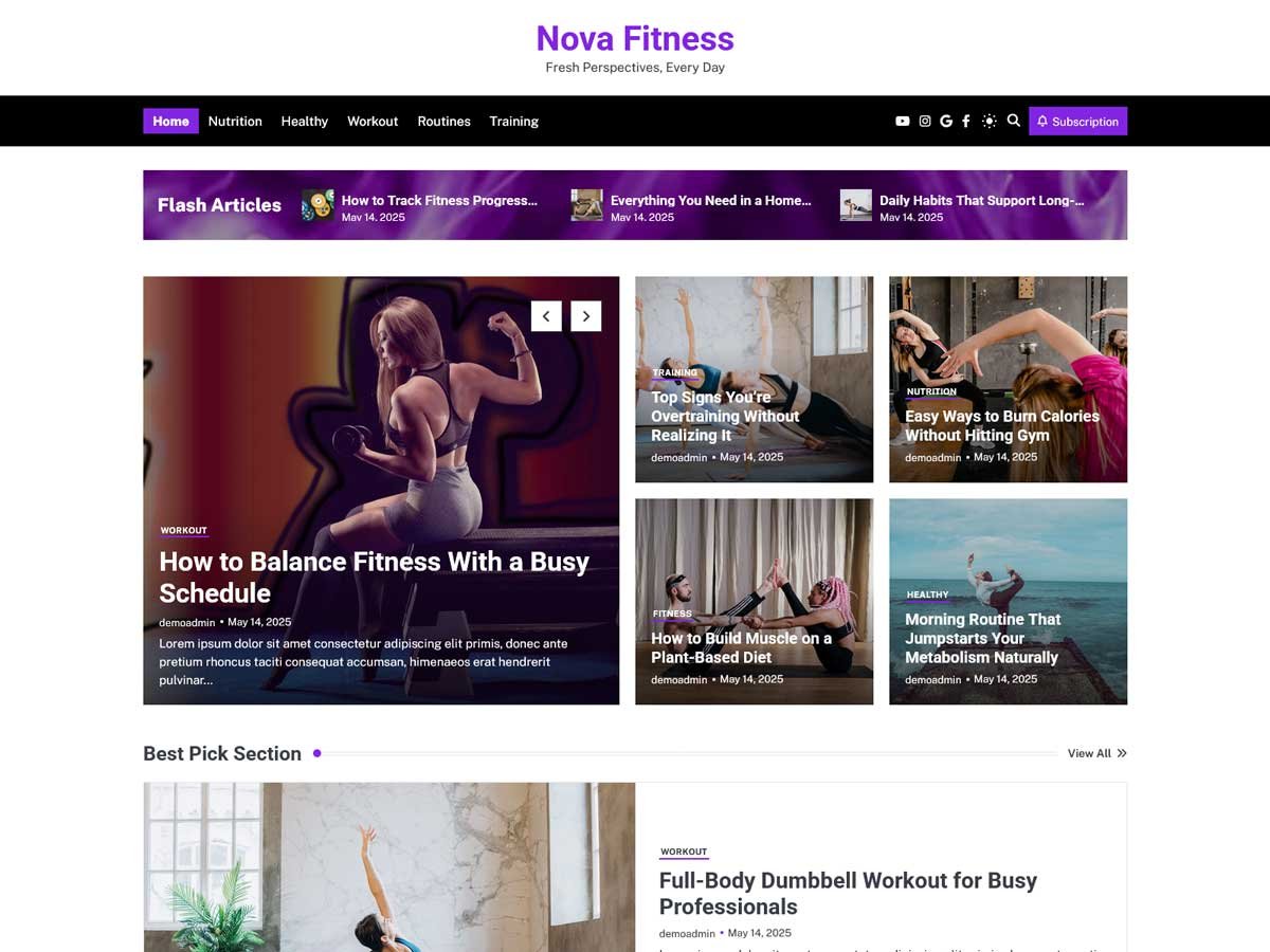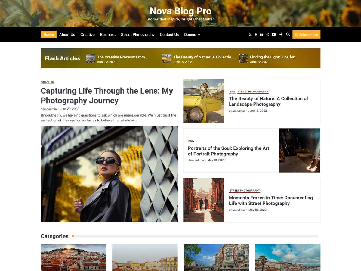 Nova Blog Pro provides various homepage demos to choose from based on the nature of your theme, the demos offer various designs and feel. Choose a demo that best displays your website’s identity and highlights the most important features.